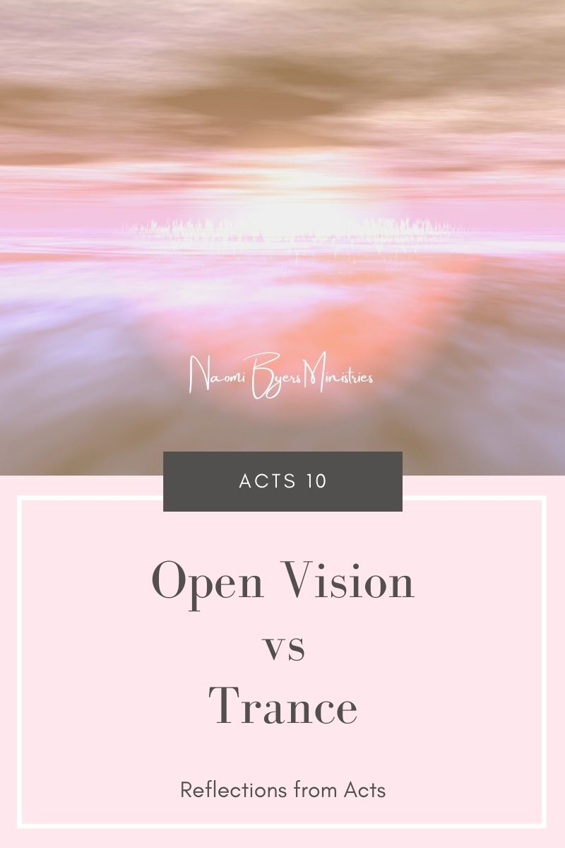 I’m really enjoying my adventures with God reading the book of Acts afresh. I highly recommend it. Today I was reading the story of Cornelius and his conversion via visionary experiences. The vision Cornelius had was different to Peter’s and so I want to spend some time explaining the difference between an open vision and a trance. In this story, Cornelius has an open vision (Acts 10:3-6) and Peter has a trance (Acts 10:9-16). ⠀